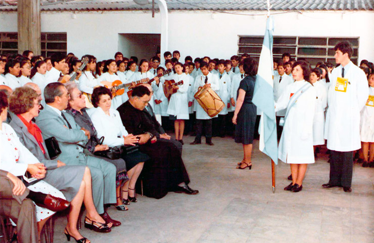 "Mucho tiempo pasó desde esos años en los que el fundador y el Rector recorrían los hogares de Escobar para convencer a los padres que sus hijos debían tener la posibilidad de cursar sus estudios secundarios."
